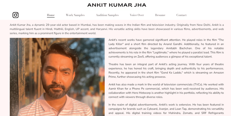 Ankit Kumar Jha, a dynamic 29-year-old actor based in Mumbai, has been making waves in the Indian film and television industry. Originally from New Delhi, Ankit is a multilingual talent fluent in Hindi, Maithili, English, UP accent, and Haryanvi. His versatile acting skills have been showcased in various films, advertisements, and web series, marking him as a prominent figure in the entertainment world.