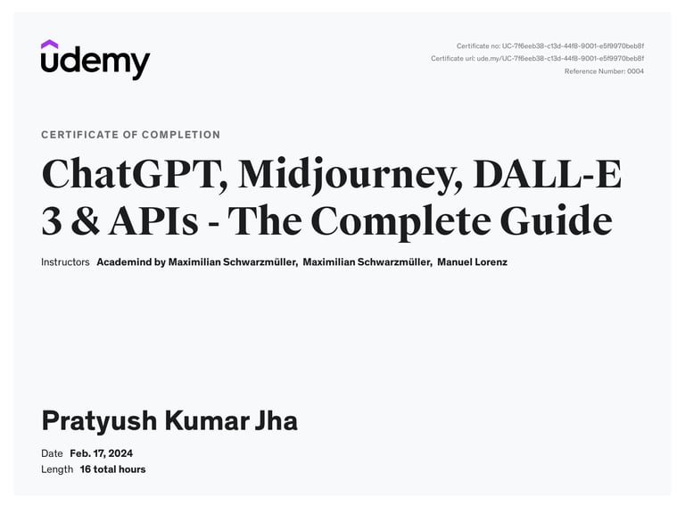 The “ChatGPT, Midjourney, DALL-E 3 & APIs - The Complete Guide” on Udemy, created by Academind by Maximilian Schwarzmüller, is designed to help you significantly boost your productivity using ChatGPT and OpenAI APIs. This comprehensive course covers: