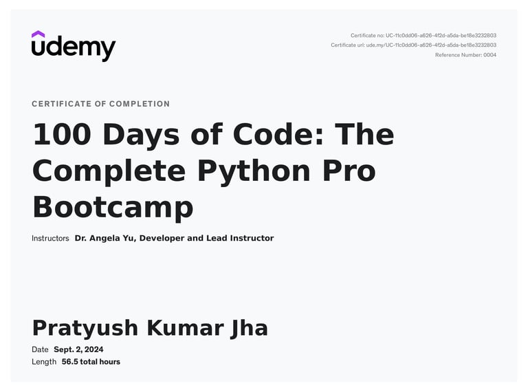 The “100 Days of Code: The Complete Python Pro Bootcamp” on Udemy, created by Dr. Angela Yu, is designed to help master Python by building 100 unique projects over 100 days. This comprehensive course covers a wide range of topics, including: